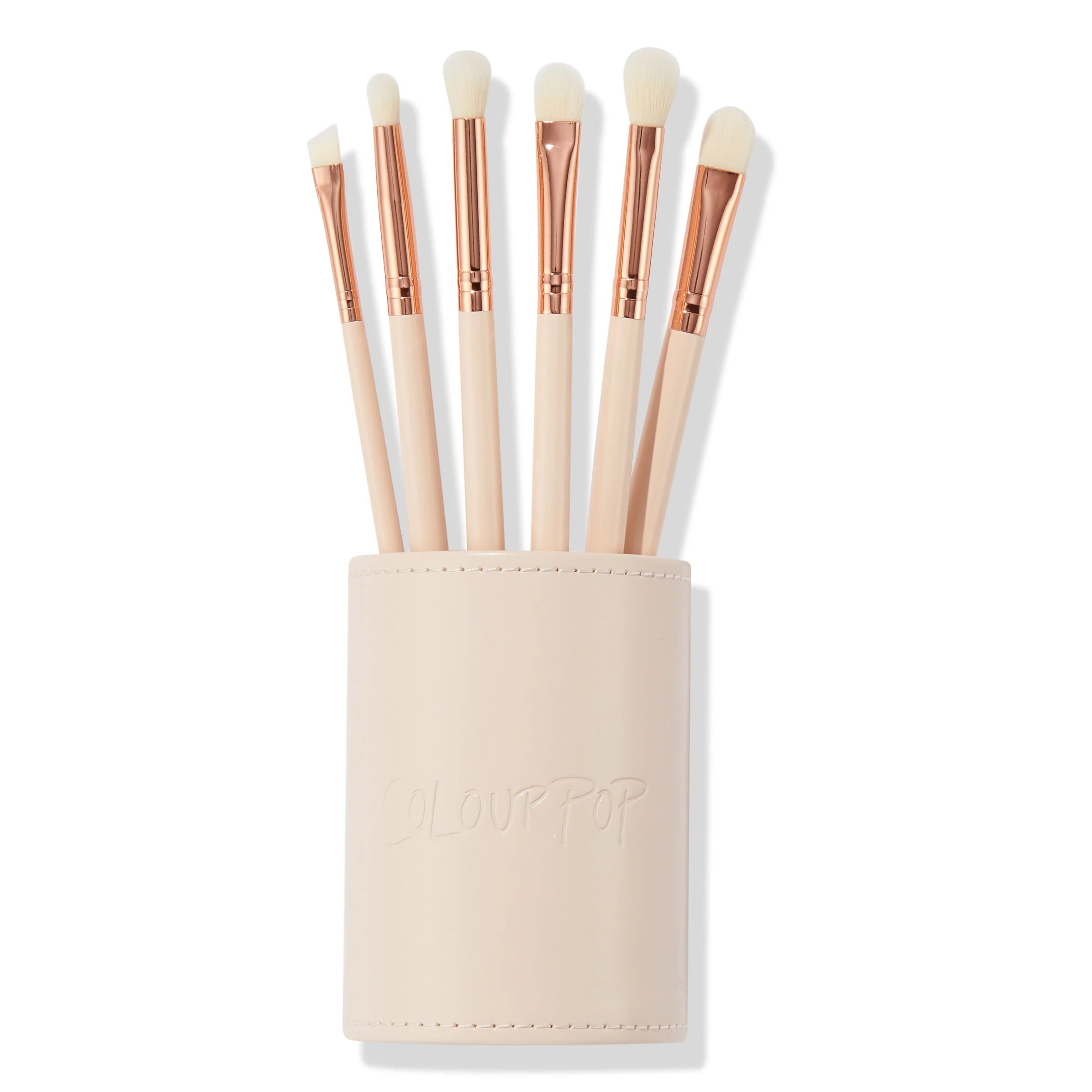 It’s all eyes on you with 6 essential eye brushes to seamlessly blend, buff, define and line plus a matching brush cup. Each brush is made with luxe synthetic vegan bristles that are super soft to the touch & cruelty-free! This set has everything you need for endless eye looks! The brush cup would also look super cute on your vanity.